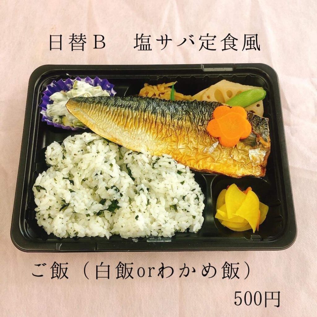 塩サバ定食弁当は毎日通ってこんなの食べたいんだよー!を形にしたら、日替わりメニューの定番になりました。サバを切らずに半身をそのまま食べたいんだって!!