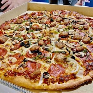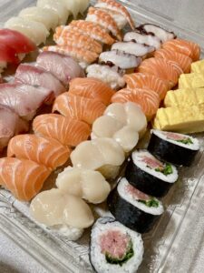 コストコのお寿司や、大きなピザ、ホットドッグなど。